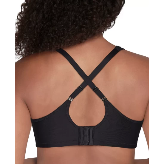 The Vanity Fair Wirefree Sport Bra offers medium impact bounce control, separation and support without restrictive compression and moisture wicking fabric for comfort.