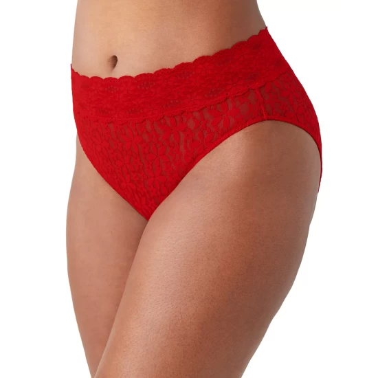 Hi cut glamour. This stunning brief from Wacoal features gorgeous floral lace and a scallop-edged waistband.
